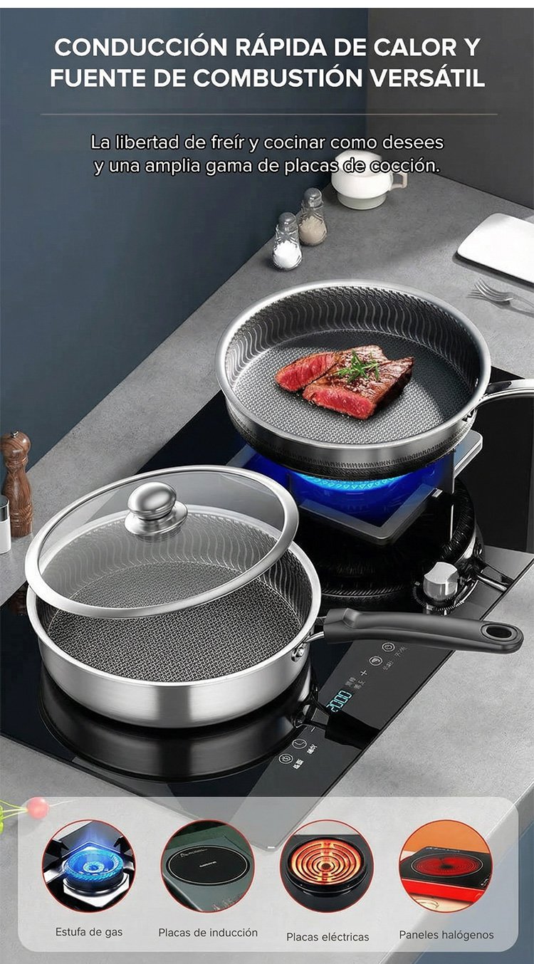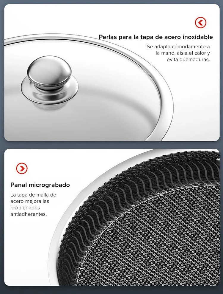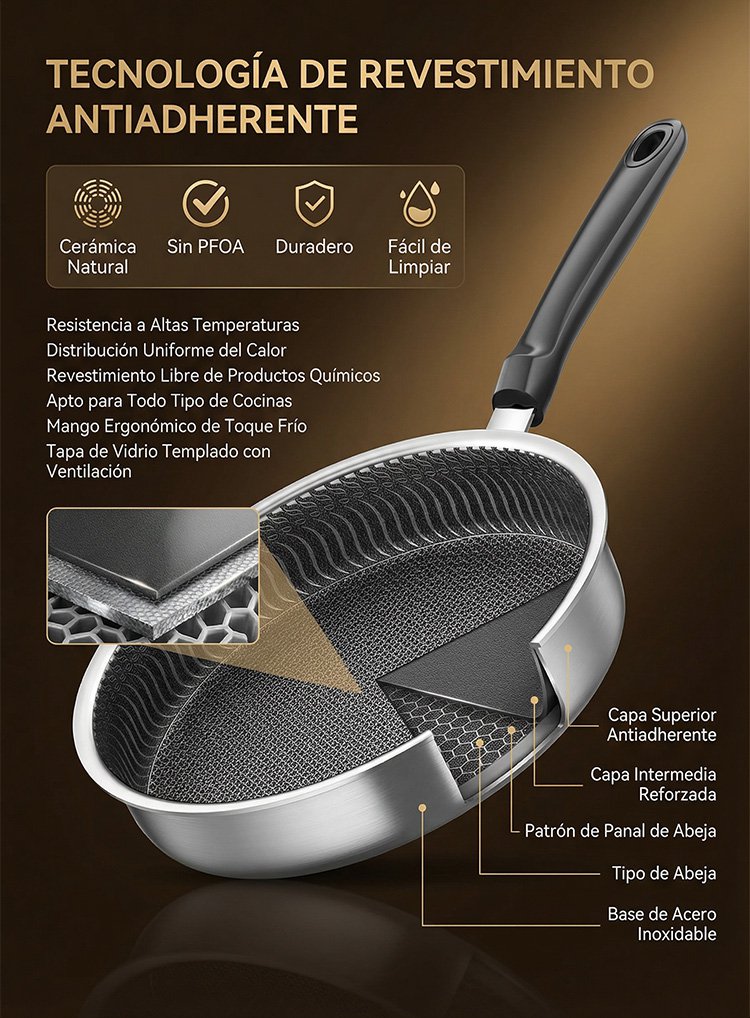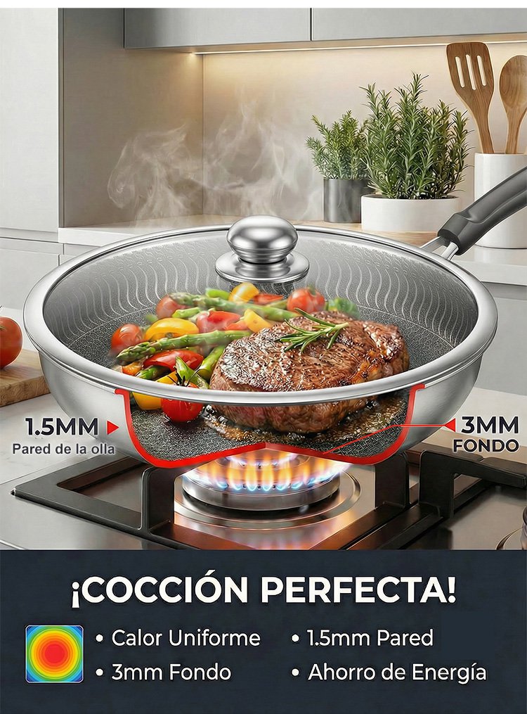✨ 0%recubrimientos químicos. Reduce el humo un 80% y ofrece un efecto antiadherente natural.