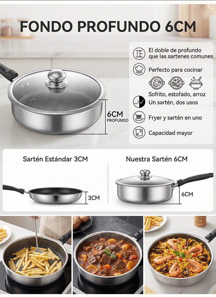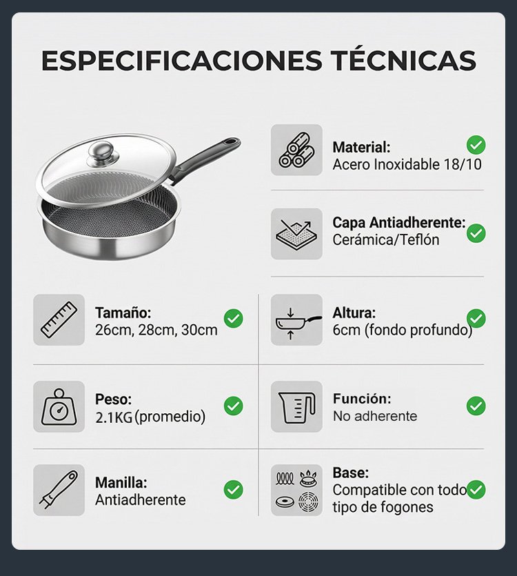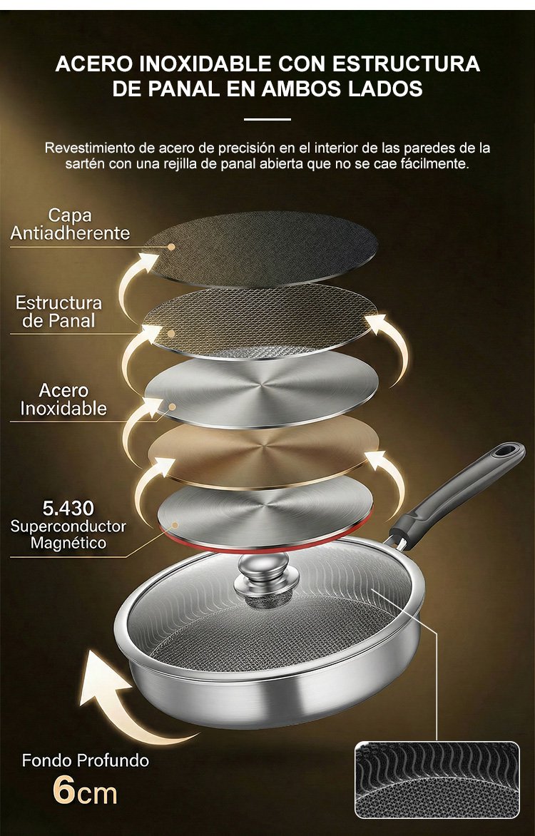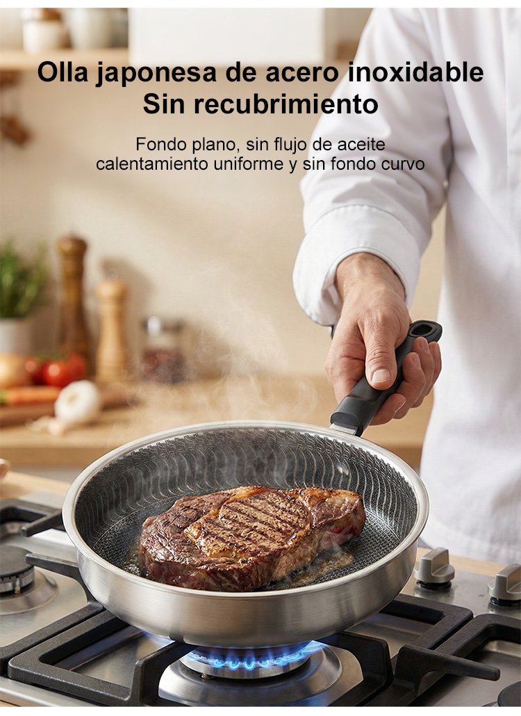 ✨ 0%recubrimientos químicos. Reduce el humo un 80% y ofrece un efecto antiadherente natural.